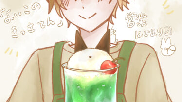 よいこのきっさてん 営業開始 とある春のはじまりに ふしぎなきっさてんがはじまるそうさぁ、あなたも覗いてみては?お客さん来るかなぁ、どきどきだね!本日のメニュー よいこのクリームソーダ 2026.03.01 よいこのきっさてん作品